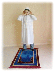 Tekbiratoul ihram - L'entrée en prière : Les mains à hauteur des épaules ou des oreilles, les paumes tournées vers La Mecque, le regard sur le lieu de prosternation, les pieds legèrement écartés pour les hommes ( collés pour les femmes ). On prononce le tekbir en même temp que l'on baisse les bras jusqu'aux cuisses :